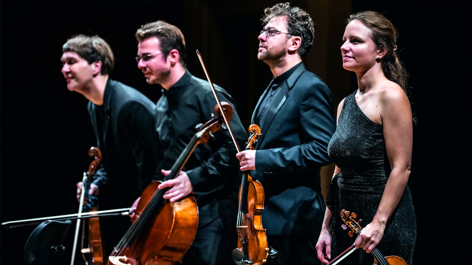 Kommunikationskunst – Es ist keine Selbstverständlichkeit, dass exzellente Solisten als Ensemble so harmonieren wie Geiger Alexander Sitkovetsky, Bratschist Nils Mönkemeyer und Cellist Benjamin Nyffenegger gemeinsam mit Julia Fischer. Seit rund anderthalb Jahrzehnten gelingt ihnen die „Quartettur“ ihrer profilierten Persönlichkeiten, und das mit „einer überbordenden Expressivität, die das Publikum von den Sitzen reißt“ (Welt). Auch Julia Fischer möchte diesen Gegenpol zum solistischen Jetset nicht mehr missen: „Die Quartettperiode ist für mich immer das Highlight der Saison. Wir vier spielen nicht nur gerne zusammen, sondern sind auch enge Freunde.“ Mit einer Kommunikationskunst, die hörbar und auch sichtbar ist, geht das Julia Fischer Quartett in der aktuellen Saison an Schostakowitschs 1946 entstandenes, den Nachhall der Kriegsjahre in sich tragendes 3. Streichquartett. Gerahmt wird es von Schuberts Quartettsatz c-Moll, erstmals veröffentlicht dank Johannes Brahms – der selbst lange feilte und zögerte, bevor er seine eigenen Quartette op. 51 aus der Hand gab.