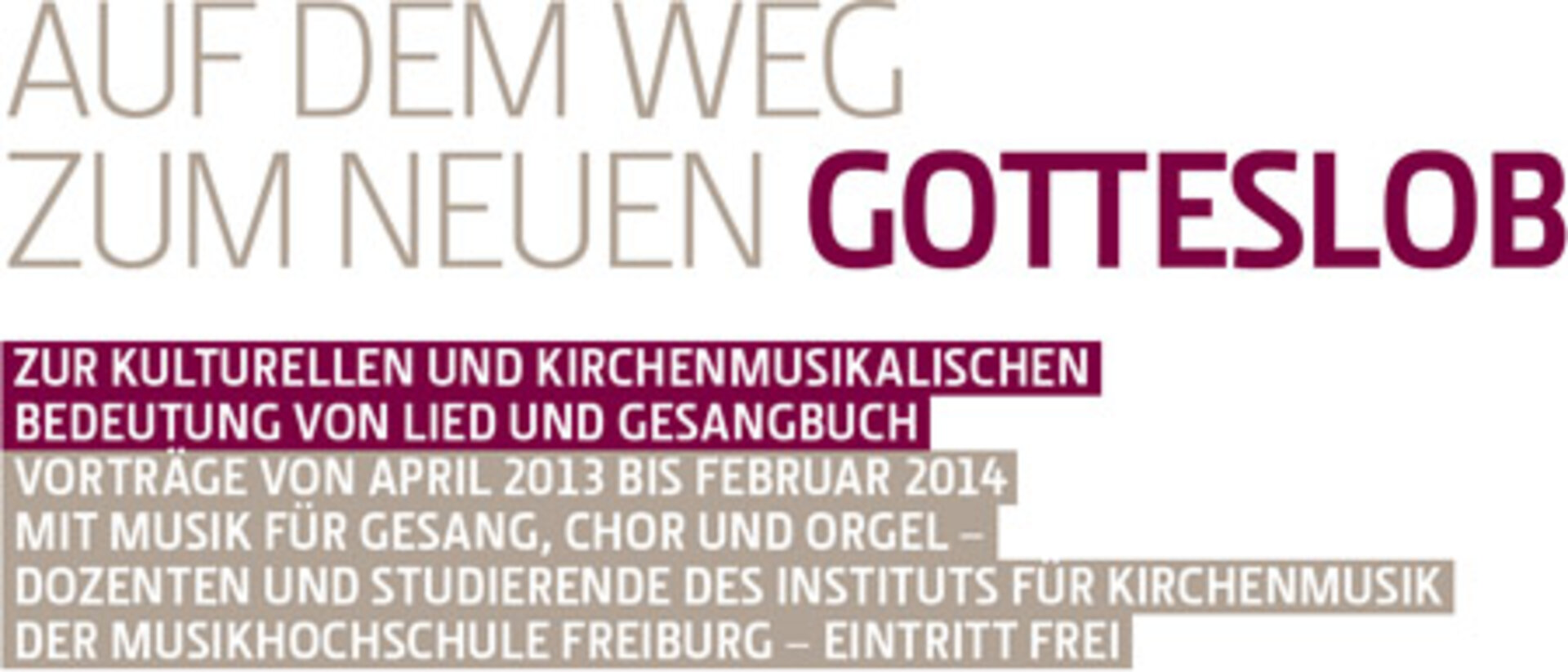 Am ersten Advent 2013 wird das katholische "Gotteslob" durch ein neues Gebet- und Gesangsbuch abgelöst. Aus diesem Anlass startet das Institut für Kirchenmusik Freiburg ab April 2013 eine Vortragsreihe, bei der dem vielschichtigen Phänomen "Kirchenlied und Gesangsbuch" interdisziplinär nachgegangen wird.