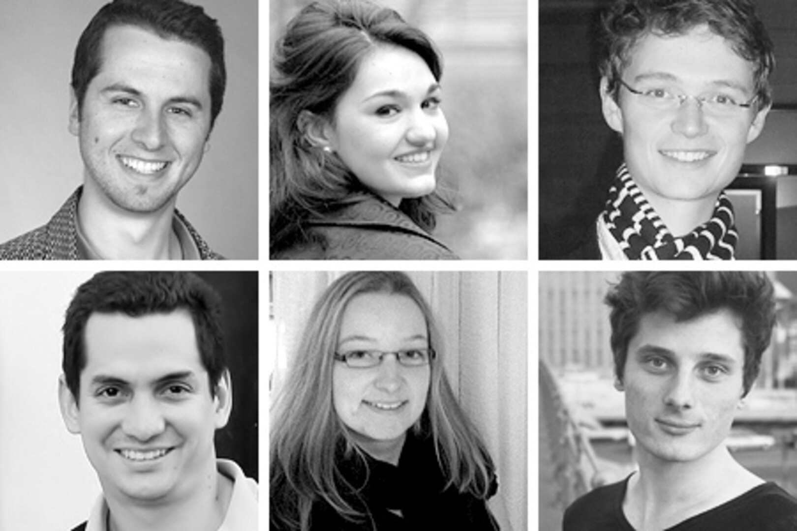 Sechs Musikstudierende der Freiburger Musikhochschule erhielten jetzt das begeehrte Deutschlandstipendium (obere Reihe: Raphael Bürkle, Samira Memarzade, Felix Mildenberger, untere Reihe: Luis Antonio Ramos Regino, Tanja Spatz, Clemens K. Thomas)