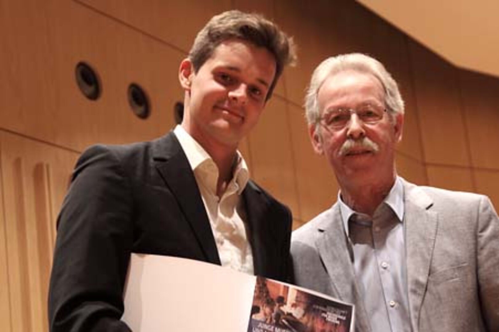 Auch der junge Tenor Moritz Kallenberg (links, bei der Überreichung des Carl Seemann Preises 2013 durch den Fördervereinsvorsitzenden Dr. Ullrich Keller) wird bei den Osterfestspielen 2015 in Baden-Baden singen.