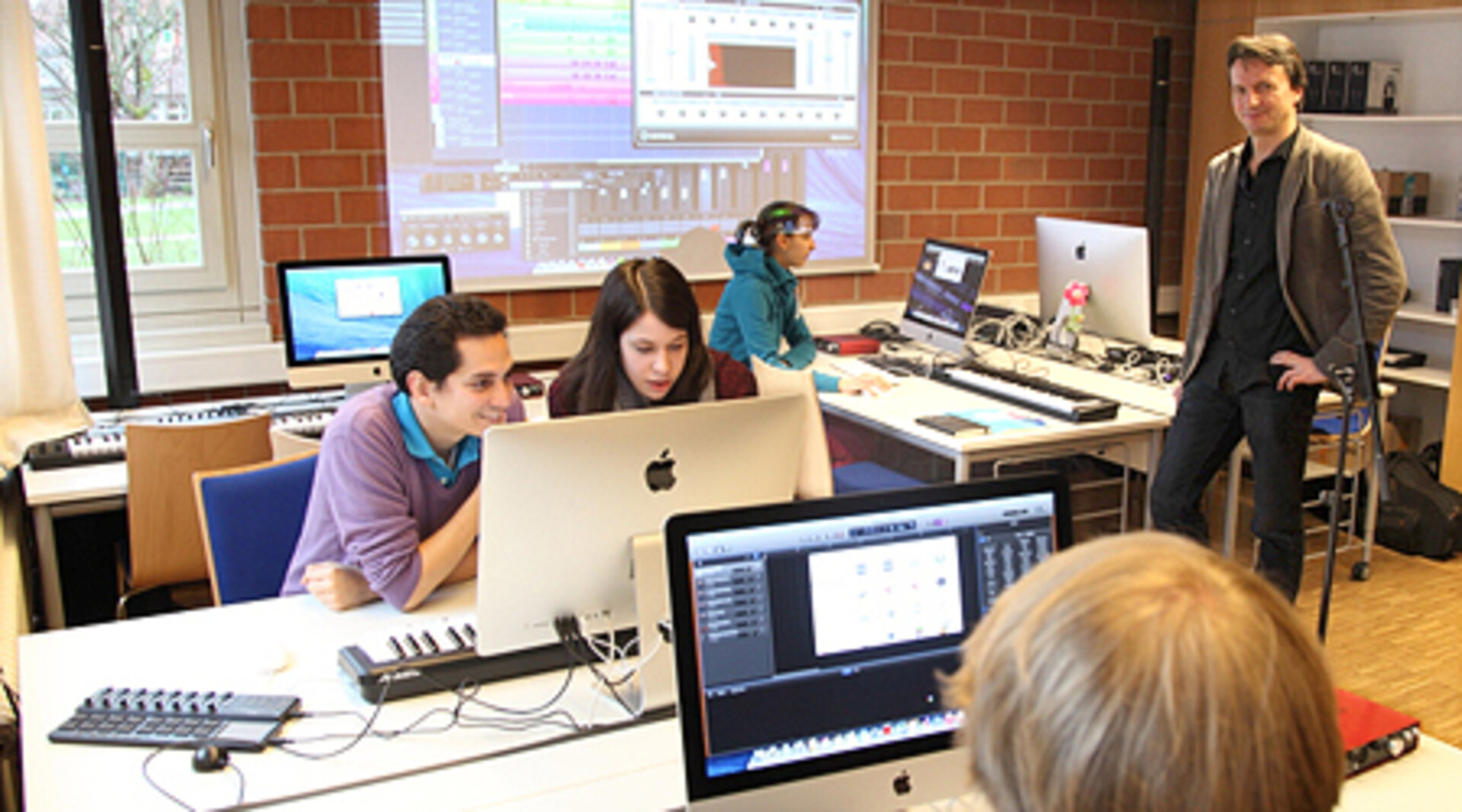 Der Medienraum 115 ist bestens ausgestattet mit aktueller Soft- und Hardware für eine zeitgemäße Auseinandersetzung mit digitalen Medien in der Musikwelt: