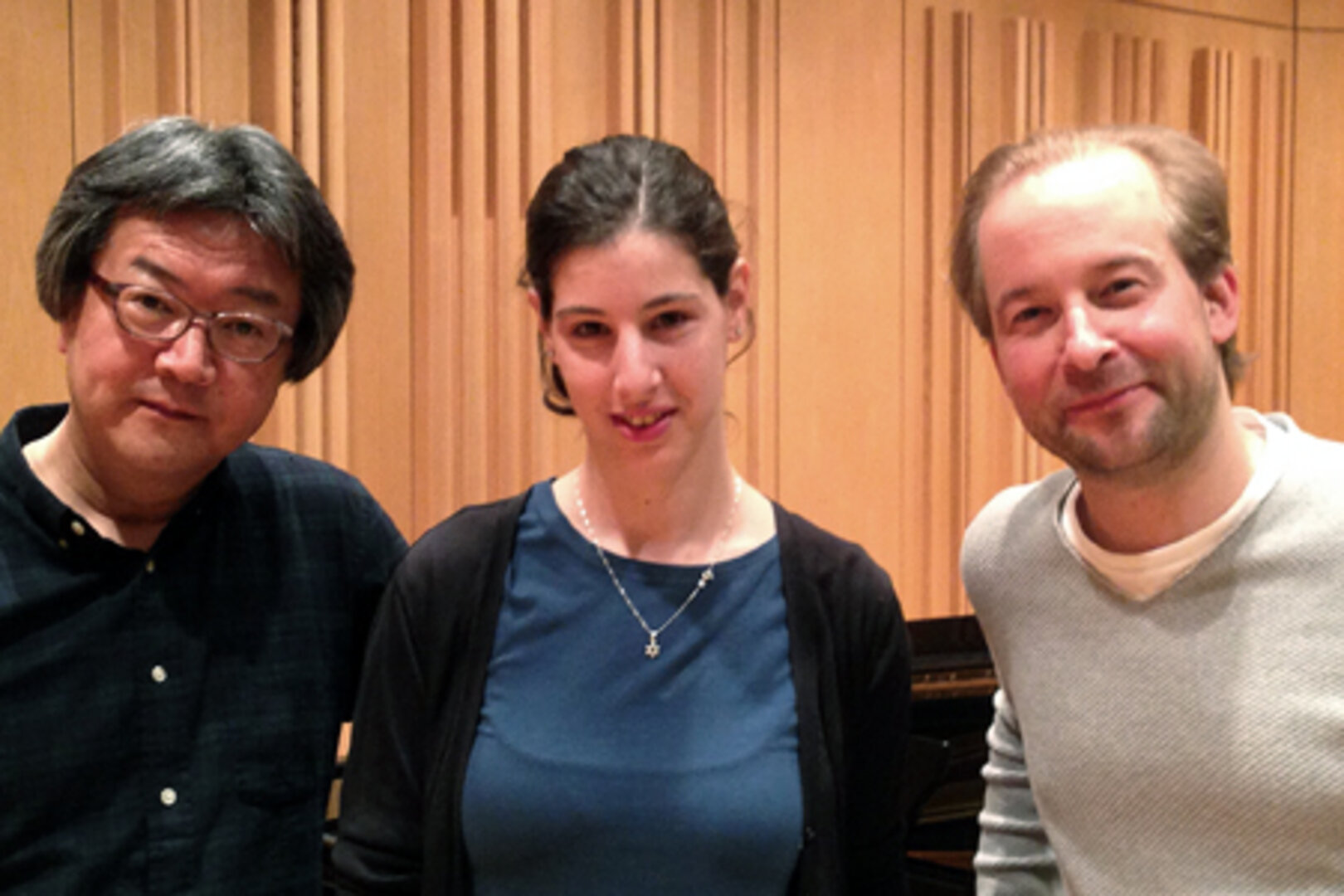 Nitzan Bartana, Freiburger Violin-Studentin (Klasse Prof. Rainer Kussmaul, Bildmitte), wird im November nach Japan für einen Auftritt im Rahmen der Schubertiade Japan reisen. Die Einladung erfolgte durch den künstlerischer Leiter des Festivals, dem Tenor und Dirigenten Yoshifumi Hata, der Nitzan Bartan (links im Bild) bei einer internen Audition im Kammermusiksaal der Freiburger Musikhochschule kennengelernt hatte.